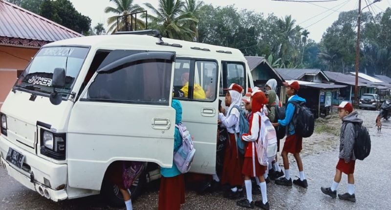 Program ini juga meringankan beban orang tua yang sebelumnya harus mengantar anak dengan sepeda motor atau membiarkan mereka berjalan jauh sendirian.