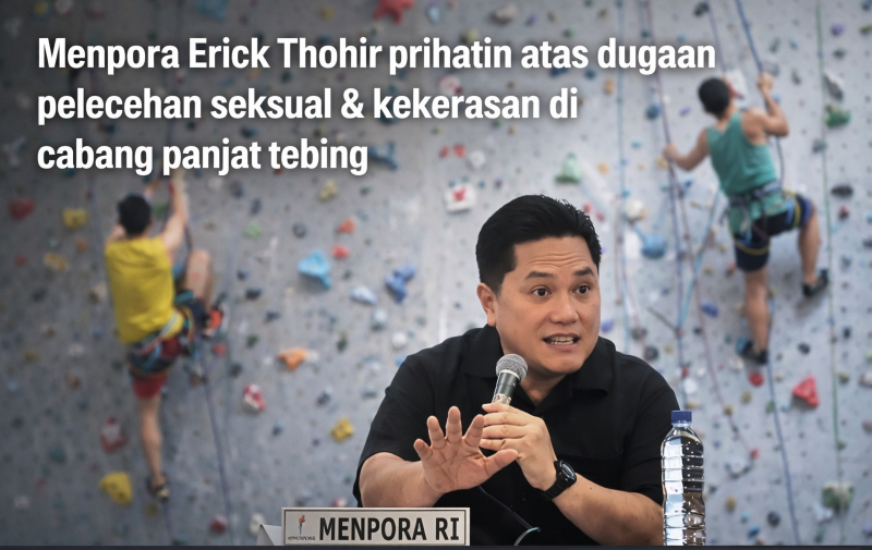 JAKARTA – Menteri Pemuda dan Olahraga Republik Indonesia (Menpora RI) Erick Thohir menyampaikan keprihatinan mendalam sekaligus empati kepada para atlet yang diduga menjadi korban pelecehan seksual dan kekerasan fisik dalam cabang olahraga panjat tebing. Ia menegaskan bahwa keselamatan dan martabat atlet merupakan prioritas utama negara.