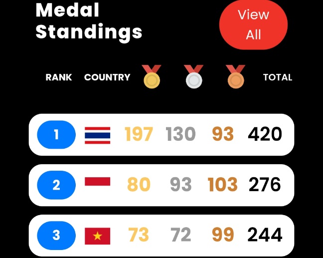 Tak hanya memenuhi target emas, Indonesia juga mencatat prestasi penting dengan bertengger di peringkat kedua klasemen sementara, sebuah pencapaian yang disebut Erick sebagai sejarah baru setelah terakhir kali Indonesia mampu bersaing di posisi atas tanpa status tuan rumah pada SEA Games 1995.